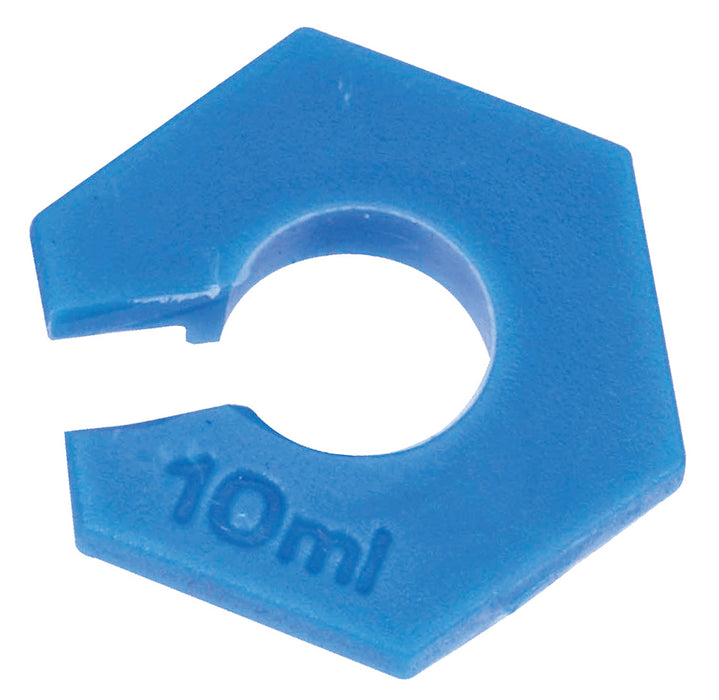 Eisco Labs' blue protector is designed to safeguard 10mL graduated cylinders with a hexagonal shape that prevents them from rolling off the counter if overturned. Made of polypropylene, this pack of 10 protectors is suitable for tubes with a diameter of 16mm (+/- 0.15mm).