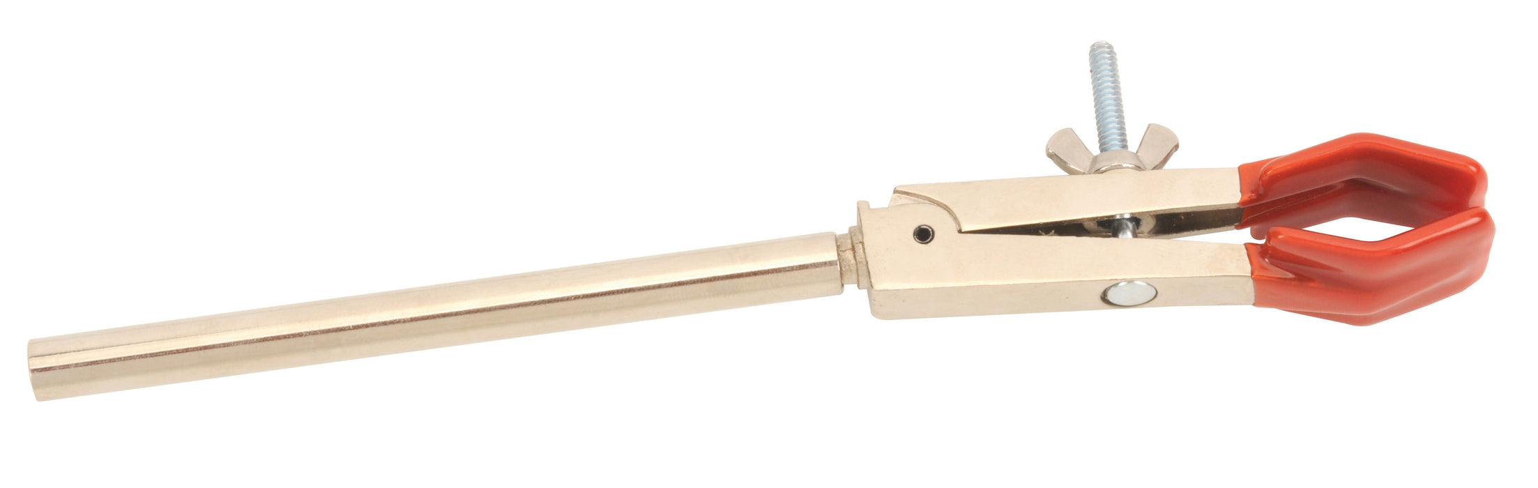 This clamp is ideal for use with straight-sided glassware and apparatus, such as burets, tubes, and flask necks. The jaws are coated with a non-slip vinyl sleeve and can hold objects with diameters ranging from 12 to 45 mm.