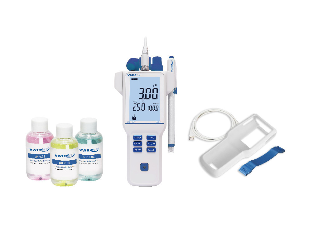 The VWR-PH500 meter provide accurate and reliable measurements of pH, mV and temperature in any environment., The easy to use VWR-PH500 portable meters provide accurate measurements inside and outside the lab with its rechargeable battery. The large, backlit LCD display allows results to easily be viewed during operation., 02_BulletPoint: High resolution LCD display (3.5") | 1 to 2 point calibration | Automatic identification of three pH standard buffer solutions (4.01, 7.00 and 10.01 pH) | IP65 waterproof | Automatic or manual temperature compensation capabilities | Auto-read and continuous-read measurement options | Ability to save 200 sets of measurement results | Rechargeable battery | Displays electrode status (electrode slope) | Three-year meter warranty, 11_Delivery: All meters include electrode holders (2), meter silicone rubber case, and hand strap., 10_Ordering: Carrying case available for purchase separately (77618-810). For application specific recommendations, please reference 'VWR® Electrode Selection Guide' located in the Related Information section., VWR-PH500 meter with PH40 cleanable electrode, TEMP01 ATC probe, and pH buffers (4.01, 7.00, 10.01) 50 ml bottles, Cat. No.: 77619-148, The VWR-PH500 meter provide accurate and reliable measurements of pH, mV and temperature in any environment., The easy to use VWR-PH500 portable meters provide accurate measurements inside and outside the lab with its rechargeable battery. The large, backlit LCD display allows results to easily be viewed during operation., 02_BulletPoint: High resolution LCD display (3.5") | 1 to 2 point calibration | Automatic identification of three pH standard buffer solutions (4.01, 7.00 and 10.01 pH) | IP65 waterproof | Automatic or manual temperature compensation capabilities | Auto-read and continuous-read measurement options | Ability to save 200 sets of measurement results | Rechargeable battery | Displays electrode status (electrode slope) | Three-year meter warranty, 11_Delivery: All meters include electrode holders (2), meter silicone rubber case, and hand strap., 10_Ordering: Carrying case available for purchase separately (77618-810). For application specific recommendations, please reference 'VWR® Electrode Selection Guide' located in the Related Information section., VWR-PH500 meter with PH36 slender electrode, TEMP01 ATC probe, and pH buffers (4.01, 7.00, 10.01) 50 ml bottles, Cat. No.: 77619-146, The VWR-PH500 meter provide accurate and reliable measurements of pH, mV and temperature in any environment., The easy to use VWR-PH500 portable meters provide accurate measurements inside and outside the lab with its rechargeable battery. The large, backlit LCD display allows results to easily be viewed during operation., 02_BulletPoint: High resolution LCD display (3.5") | 1 to 2 point calibration | Automatic identification of three pH standard buffer solutions (4.01, 7.00 and 10.01 pH) | IP65 waterproof | Automatic or manual temperature compensation capabilities | Auto-read and continuous-read measurement options | Ability to save 200 sets of measurement results | Rechargeable battery | Displays electrode status (electrode slope) | Three-year meter warranty, 11_Delivery: All meters include electrode holders (2), meter silicone rubber case, and hand strap., 10_Ordering: Carrying case available for purchase separately (77618-810). For application specific recommendations, please reference 'VWR® Electrode Selection Guide' located in the Related Information section., VWR-PH500 meter with PH38 blade spear electrode, TEMP01 ATC probe, and pH buffers (4.01, 7.00, 10.01) 50 ml bottles, Cat. No.: 77619-144, The VWR-PH500 meter provide accurate and reliable measurements of pH, mV and temperature in any environment., The easy to use VWR-PH500 portable meters provide accurate measurements inside and outside the lab with its rechargeable battery. The large, backlit LCD display allows results to easily be viewed during operation., 02_BulletPoint: High resolution LCD display (3.5") | 1 to 2 point calibration | Automatic identification of three pH standard buffer solutions (4.01, 7.00 and 10.01 pH) | IP65 waterproof | Automatic or manual temperature compensation capabilities | Auto-read and continuous-read measurement options | Ability to save 200 sets of measurement results | Rechargeable battery | Displays electrode status (electrode slope) | Three-year meter warranty, 11_Delivery: All meters include electrode holders (2), meter silicone rubber case, and hand strap., 10_Ordering: Carrying case available for purchase separately (77618-810). For application specific recommendations, please reference 'VWR® Electrode Selection Guide' located in the Related Information section., VWR-PH500 meter with PH49 strong alkali resistance electrode, TEMP01 ATC probe, and pH buffers (4.01, 7.00, 10.01) 50 ml bottles, Cat. No.: 77619-136, The VWR-PH500 meter provide accurate and reliable measurements of pH, mV and temperature in any environment., The easy to use VWR-PH500 portable meters provide accurate measurements inside and outside the lab with its rechargeable battery. The large, backlit LCD display allows results to easily be viewed during operation., 02_BulletPoint: High resolution LCD display (3.5") | 1 to 2 point calibration | Automatic identification of three pH standard buffer solutions (4.01, 7.00 and 10.01 pH) | IP65 waterproof | Automatic or manual temperature compensation capabilities | Auto-read and continuous-read measurement options | Ability to save 200 sets of measurement results | Rechargeable battery | Displays electrode status (electrode slope) | Three-year meter warranty, 11_Delivery: All meters include electrode holders (2), meter silicone rubber case, and hand strap., 10_Ordering: Carrying case available for purchase separately (77618-810). For application specific recommendations, please reference 'VWR® Electrode Selection Guide' located in the Related Information section., VWR-PH500 meter with 
