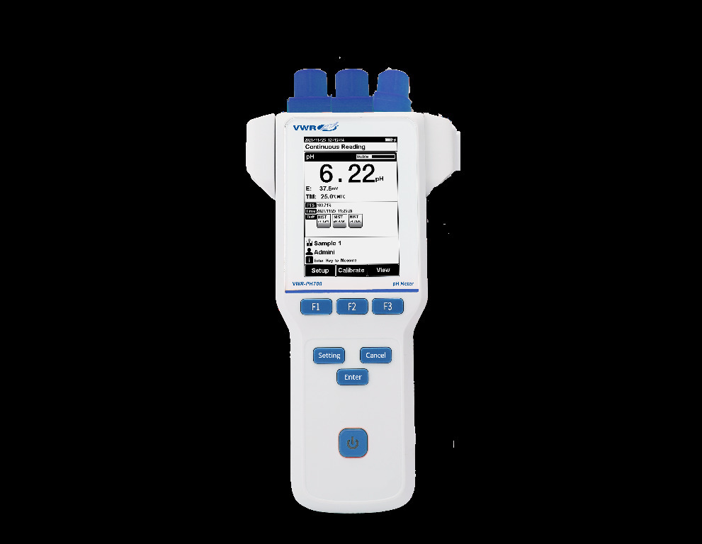 The VWR-PH700 meter provide accurate and reliable measurements of pH, mV and temperature in any environment., The easy to use VWR-PH700 portable meters provide accurate measurements in the field and the laboratory. The large, backlit LCD display allows results to easily be viewed during operation. The included carrying case allows for easy transport of all items to make measurements on the go even easier., 04_BodyText: Selectable pH buffer groups including NIST, DIN, GB, USA., 02_BulletPoint: High resolution LCD display (3.5") | 1 to 5 point calibration | IP 65 waterproof | Automatic or manual temperature compensation capabilities | Auto-read, timed-read, and continuous-read measurement options | Ability to save 200 sets of measurement results | Rechargeable battery | Automatic electrode diagnosis with pH slope and offset display, 11_Delivery: All meters include electrode holders (2), meter silicone rubber case, and hand strap. Three-year meter warranty., 10_Ordering: For application specific recommendations, please refer 'VWR® Electrode Selection Guide' located in the Related Information section., VWR-PH700 meter with PH36 slender electrode, TEMP01 ATC probe, and pH buffers (4.01, 7.00, 10.01) 50 ml bottles, Cat. No.: 77619-182, The VWR-PH700 meter provide accurate and reliable measurements of pH, mV and temperature in any environment., The easy to use VWR-PH700 portable meters provide accurate measurements in the field and the laboratory. The large, backlit LCD display allows results to easily be viewed during operation. The included carrying case allows for easy transport of all items to make measurements on the go even easier., 04_BodyText: Selectable pH buffer groups including NIST, DIN, GB, USA., 02_BulletPoint: High resolution LCD display (3.5") | 1 to 5 point calibration | IP 65 waterproof | Automatic or manual temperature compensation capabilities | Auto-read, timed-read, and continuous-read measurement options | Ability to save 200 sets of measurement results | Rechargeable battery | Automatic electrode diagnosis with pH slope and offset display, 11_Delivery: All meters include electrode holders (2), meter silicone rubber case, and hand strap. Three-year meter warranty., 10_Ordering: For application specific recommendations, please refer 'VWR® Electrode Selection Guide' located in the Related Information section., VWR-PH700 meter with PH38 blade spear electrode, TEMP01 ATC probe, and pH buffers (4.01, 7.00, 10.01) 50 ml bottles, Cat. No.: 77619-180, The VWR-PH700 meter provide accurate and reliable measurements of pH, mV and temperature in any environment., The easy to use VWR-PH700 portable meters provide accurate measurements in the field and the laboratory. The large, backlit LCD display allows results to easily be viewed during operation. The included carrying case allows for easy transport of all items to make measurements on the go even easier., 04_BodyText: Selectable pH buffer groups including NIST, DIN, GB, USA., 02_BulletPoint: High resolution LCD display (3.5") | 1 to 5 point calibration | IP 65 waterproof | Automatic or manual temperature compensation capabilities | Auto-read, timed-read, and continuous-read measurement options | Ability to save 200 sets of measurement results | Rechargeable battery | Automatic electrode diagnosis with pH slope and offset display, 11_Delivery: All meters include electrode holders (2), meter silicone rubber case, and hand strap. Three-year meter warranty., 10_Ordering: For application specific recommendations, please refer 'VWR® Electrode Selection Guide' located in the Related Information section., VWR-PH700 meter with PH47 ultrapure water electrode, TEMP01 ATC probe, and pH buffers (4.01, 7.00, 10.01) 50 ml bottles, Cat. No.: 77619-178, The VWR-PH700 meter provide accurate and reliable measurements of pH, mV and temperature in any environment., The easy to use VWR-PH700 portable meters provide accurate measurements in the field and the laboratory. The large, backlit LCD display allows results to easily be viewed during operation. The included carrying case allows for easy transport of all items to make measurements on the go even easier., 04_BodyText: Selectable pH buffer groups including NIST, DIN, GB, USA., 02_BulletPoint: High resolution LCD display (3.5") | 1 to 5 point calibration | IP 65 waterproof | Automatic or manual temperature compensation capabilities | Auto-read, timed-read, and continuous-read measurement options | Ability to save 200 sets of measurement results | Rechargeable battery | Automatic electrode diagnosis with pH slope and offset display, 11_Delivery: All meters include electrode holders (2), meter silicone rubber case, and hand strap. Three-year meter warranty., 10_Ordering: For application specific recommendations, please refer 'VWR® Electrode Selection Guide' located in the Related Information section., VWR-PH700 meter with PH44 low maintenance electrode, TEMP01 ATC probe, and pH buffers (4.01, 7.00, 10.01) 50 ml bottles, Cat. No.: 77619-176, The VWR-PH700 meter provide accurate and reliable measurements of pH, mV and temperature in any environment., The easy to use VWR-PH700 portable meters provide accurate measurements in the field and the laboratory. The large, backlit LCD display allows results to easily be viewed during operation. The included carrying case allows for easy transport of all items to make measurements on the go even easier., 04_BodyText: Selectable pH buffer groups including NIST, DIN, GB, USA., 02_BulletPoint: High resolution LCD display (3.5") | 1 to 5 point calibration | IP 65 waterproof | Automatic or manual temperature compensation capabilities | Auto-read, timed-read, and continuous-read measurement options | Ability to save 200 sets of measurement results | Rechargeable battery | Automatic electrode diagnosis with pH slope and offset display, 11_Delivery: All meters include electrode holders (2), meter silicone rubber case, and hand strap. Three-year meter warranty., 10_Ord