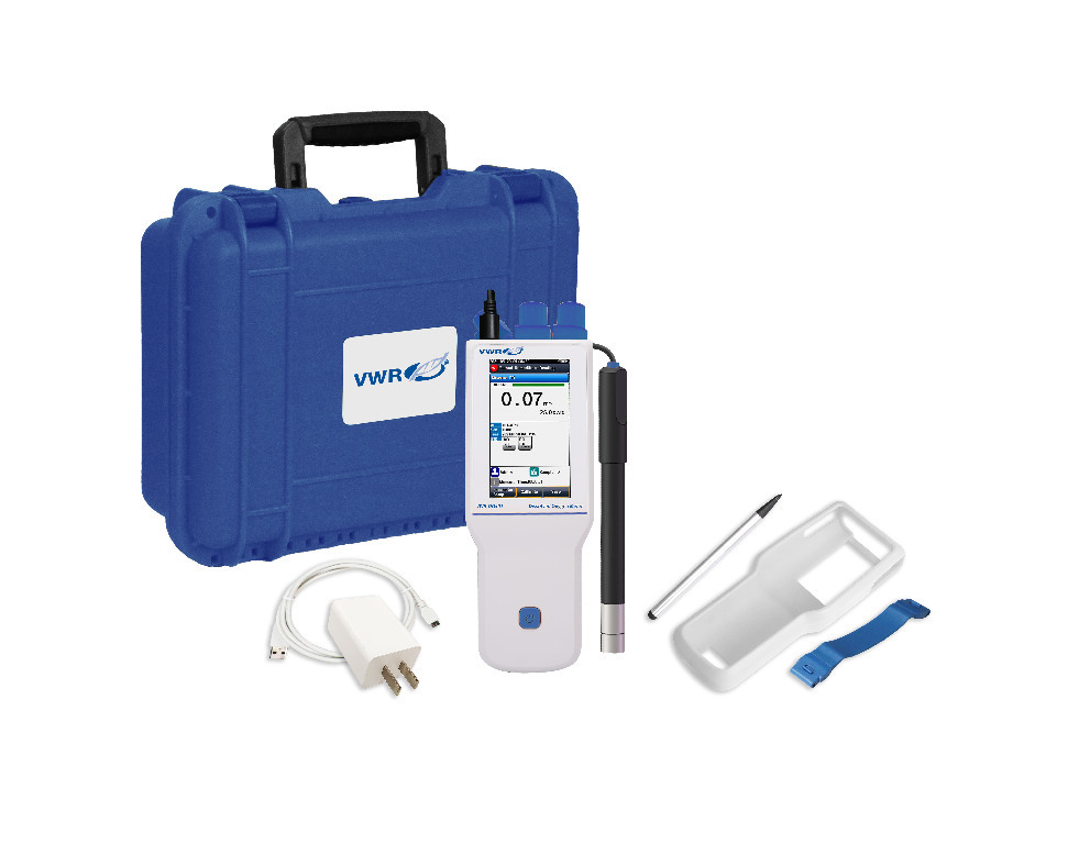 Here is the corrected text: The VWR-DO901 meter provides accurate and reliable measurements of dissolved oxygen concentration and dissolved oxygen saturation with an optical DO electrode. The easy-to-use VWR-DO901 portable meter provides accurate dissolved oxygen measurements for precise water quality testing. Its intelligent operation system offers advanced features, including user management, calibration management, electrode management, method management, and many other capabilities. • High-resolution color touch display (4.3") • Air-saturated water or zero oxygen calibration capabilities • IP 65 waterproof • Automatic or manual temperature compensation capabilities • Auto-read, timed-read, and continuous-read measurement options • Data capacity of 1000 sets for each parameter (GLP-compliant) • Rechargeable battery • Auto barometric pressure compensation Delivery includes: electrode, electrode holders (2), meter silicone rubber case, carrying case, touch screen pen, and hand strap. For use with DO3 optical DO electrode. Three-year meter warranty. For application-specific recommendations, please reference the 'VWR Electrode Selection Guide' located in the Related Information section. The VWR-DO901 meter with DO3 optical DO electrode and zero oxygen calibration solution powder vial is available as Cat. No.: 77618-940.