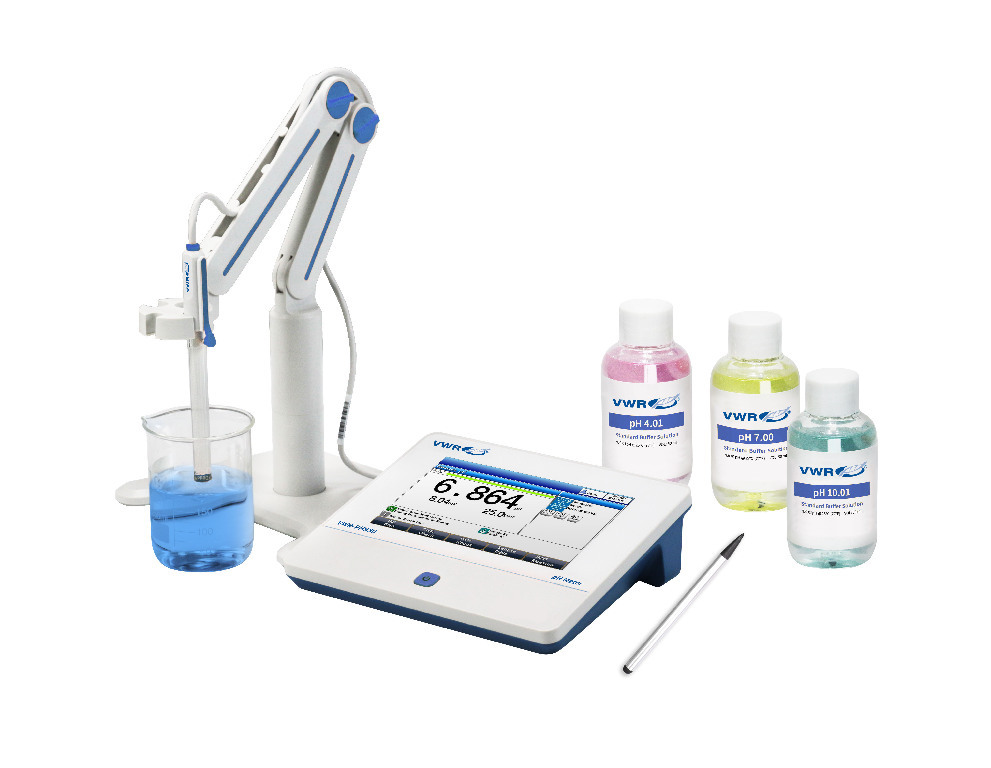 Automatic electrode diagnosis with pH slope and offset display |, 08_Certifications: | IP 54 protection. |, 11_Delivery: | All meters include: Free standing electrode holder, silicone rubber In-use cover, and touch screen pen. |, 10_Ordering: | Three-year meter warranty. |, VWR-PH950 meter with PH31 3-in-1 composite general purpose electrode and pH buffers (4.01, 7.00, 10.01) 50 ml bottles, | The VWR-PH950 meter provide accurate and reliable measurements of pH, mV, ORP and temperature. |, The easy to use 77619-222 benchtop meters provides accurate measurements in the field and the laboratory. The intelligent operation system provides features including user management, calibration management, electrode management, method management, and many other advanced capabilities. Connect the meter easilty to the VWR Dot Matrix Printer (10799-132) to print measuremetn reports. |, 04_BodyText: | For application specific recommendations, please reference 'VWR® electrode selection guide' located in the related information section. |, 02_BulletPoint: | High resolution color touch screen (7.0") |
