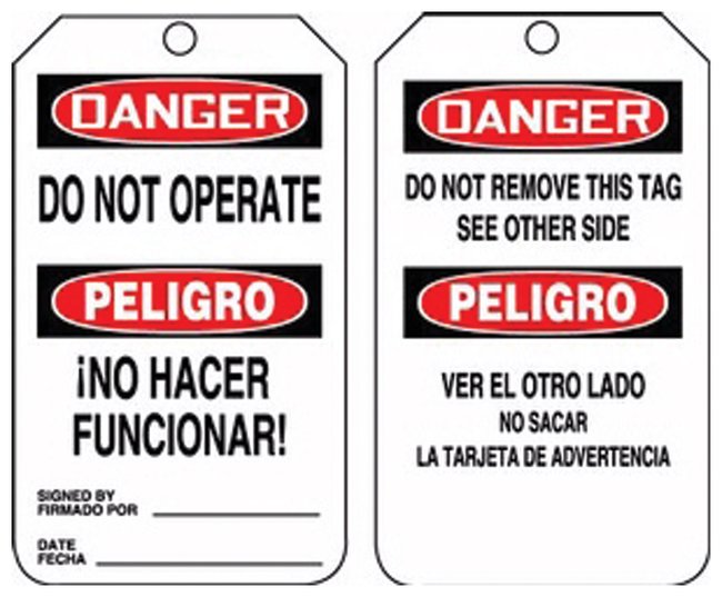 Danger: Do Not Operate Tags, Identify potential dangers that pertain to either elevator or escalator use or access, Pack of 25