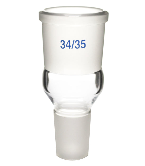 This Expansion Adapter can be used to connect lab equipment with different size joints. Made from high quality, heavy duty borosilicate glass. Socket size 34/35. Cone size 29/32. Overall length of 4" .