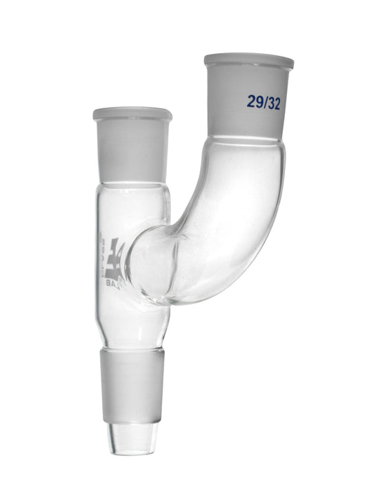 This Multiple Adapter can be used to connect lab equipment with different size joints. Made from high quality, heavy duty borosilicate glass. Socket size: 24/29. Cone size: 29/32. Measures approximately 7" tall, 4.5" in total width.