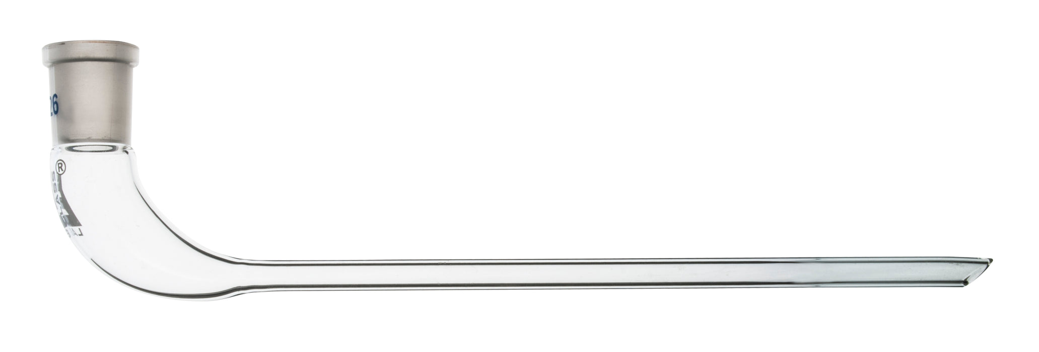 Receiver delivery adapter made of high quality, heavy duty 3.3 borosilicate glass, with long stem. 29/32 socket size. Adapter measures 11.25" in total length, and is approximately 3.75" tall. Body diameter measures approximately 1.4" (35mm). The long stem measures 8" in length and has an inner diameter of 7mm and an outer diameter of 10mm.Eisco Labs Borosilicate glass has the following heat tolerances: Strain Point -515°C | Annealing Point 565°C | Softening Point 820°C.