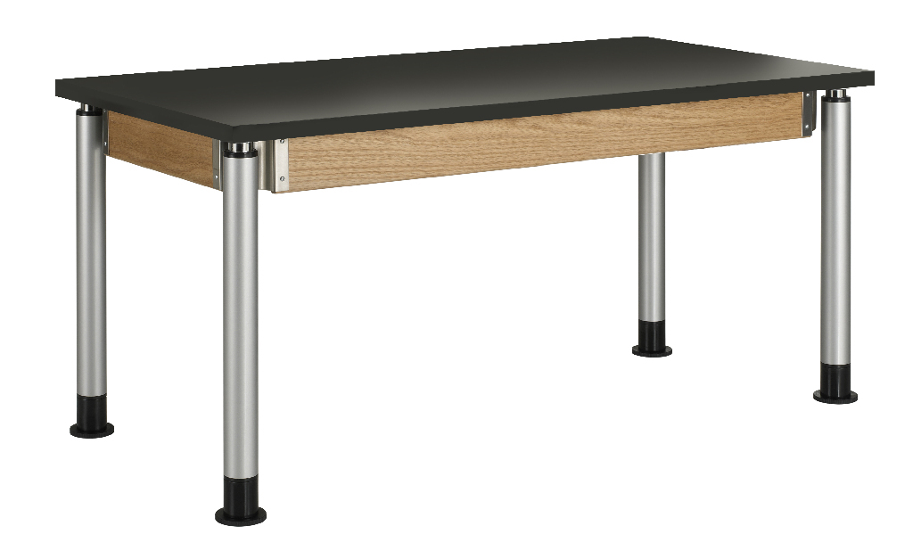 The base and legs are made of stainless steel, while the worksurface material options include phenolic resin, laminate, or ChemGuard. Solid 4.5" oak aprons are attached to your choice of three top options: 1.25" plastic laminate, 1.25" ChemGuard, and 0.75" phenolic.
