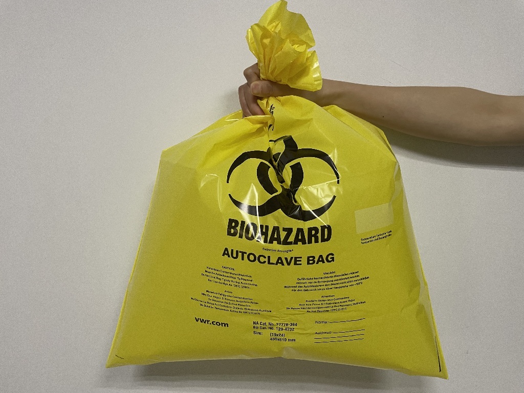 | Highly resistant to tears and punctures |, 08_Certifications: | ISO 9001:2015, Sedex. |, Capacity: 1 L, Color: Yellow, Biohazard printed bag, with temperature indicator, Dimensions: 205×305 mm (8×12"), Material: PP, Thickness: 50 µm/2 mil, | Sturdy, temperature-resistant bags are ideal for disposal of non-hazardous waste or hazardous waste that must first be autoclaved. Bags can also be used for autoclaving other products. |, Bags are supplied complete with 20 cm twist tie wire closures that allow expansion of the bag and ventilation when cooling. Bags meet the requirements of the 165 g puncture inspection standard as described in ASTM D1709. |, 02_BulletPoint: | Autoclavable up to 135 °C (275 °F) maximum |
