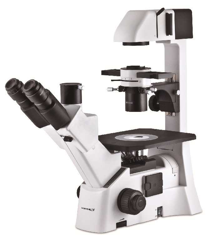 Our Basic Inverted Microscope is a refined inverted microscope with an extended focus on practical aspects., With a wide range of features for university and laboratory use, this inverted microscope features infinity corrected optics, halogen illumination, and trinocular head. Complimenting the illumination system is the Extra Long Working Distance (ELWD) 0.30 N.A. condenser with its 72 mm working distance for larger sample size. The condenser is adjustable, providing the optimum amount of illumination for each sample. This microscope also includes built-in internal 110 to 220 V auto-switching power supply., 04_BodyText: Ergonomically designed, professional frame with low-position coaxial focusing allows one-handed operation, making extended use comfortable., 02_BulletPoint: Trinocular Siedentopf head with light splitter | Side-facing quintuple nosepiece | Infinity corrected optics (4×,10× and 20× phase) | Plain stage with glass and metal inserts | Eyepieces: 22 mm, 10_Ordering: Accessories not included., VWR® Basic Inverted Trinocular Microscope, Condenser: ELWD N.A. 0.30, Eyepieces: WF 10×/22 mm, Illumination: Halogen/30 W, Nosepiece: Quintuple, Stage: Plain, with glass and metal inserts, Cat. No.: 76317-470, Our Basic Inverted Microscope is a refined inverted microscope with an extended focus on practical aspects., With a wide range of features for university and laboratory use, this inverted microscope features infinity corrected optics, halogen illumination, and trinocular head. Complimenting the illumination system is the Extra Long Working Distance (ELWD) 0.30 N.A. condenser with its 72 mm working distance for larger sample size. The condenser is adjustable, providing the optimum amount of illumination for each sample. This microscope also includes built-in internal 110 to 220 V auto-switching power supply., 04_BodyText: Ergonomically designed, professional frame with low-position coaxial focusing allows one-handed operation, making extended use comfortable., 02_BulletPoint: Trinocular Siedentopf head with light splitter | Side-facing quintuple nosepiece | Infinity corrected optics (4×,10× and 20× phase) | Plain stage with glass and metal inserts | Eyepieces: 22 mm, 10_Ordering: Accessories not included.