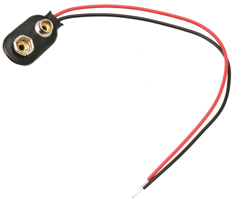 This product features an insulated snap-on connector with 15cm red and black leads, compatible with 9-volt I-type batteries.