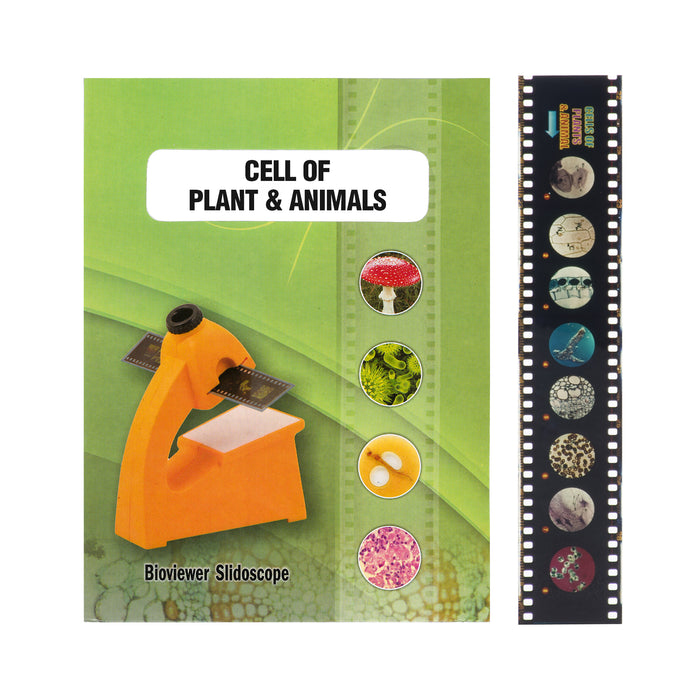 One slidoscope (35mm film) with 8 different slides picturing stained specimens photographed under ideal conditions from whole mounts to electron micrographs. Slides include photos of samples including cheek cells, plant skin cells, desmid, amoeba, plant stem cells, blood cells, nerve cells, and pollen grain.Combine with a simple microscope for easy viewing under normal daylight. No batteries or power source needed. Slides are extremely clear and require little focus.Slide set includes a colored pamphlet detailing the specifics of each individual slide. An easy resource and reference for teaching and learning.A great introduction to the world of microscience, microscopy, and general science. A complete, self-contained and well illustrated course for individual study or classroom use, with no previous knowledge of the subject required. Suitable for all biology syllabuses in schools and college, and for homeschooling or general educational home use.