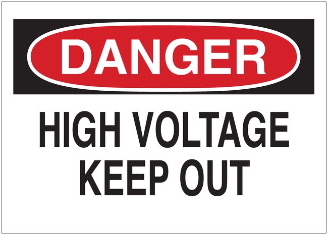 Admittance Sign: DANGER - HIGH VOLTAGE KEEP OUT, Identify electrical hazard and high voltage areas, Each