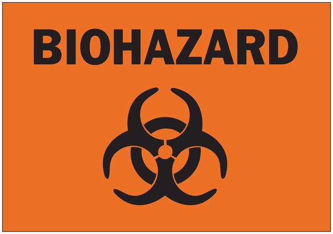 ldquo;Biohazard” with Pictogram Signs, Identify equipment, rooms and materials that contain or are contaminated with hazardous agents, Each