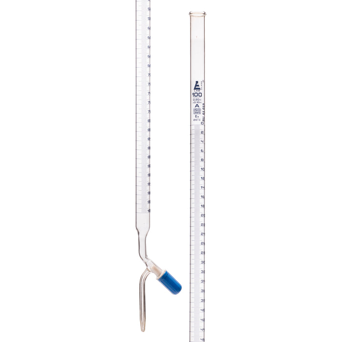 Class A, conforms with DIN ISO 385 standards for accuracy. Burette is made of high quality 3.3 borosilicate glass with PFTE needle valve rotaflow stopcock.Capacity: 100mLGraduations: 0.2mL, labeled every 2mLTolerance ± 0.10mLEisco Labs Borosilicate glass has the following heat tolerances: Strain Point 515°C | Annealing Point 565°C | Softening Point 820°C. Calibrated for delivery.Eisco Labs proudly manufactures its own products using state-of-the-art equipment, and following the highest standards of quality control.Each product is carefully designed by a team of laboratory professionals and experienced engineers with quality and durability in mind. They are manufactured with only the highest grade, raw materials and according to international quality standards to ensure that they can withstand use in even the toughest laboratory environments.