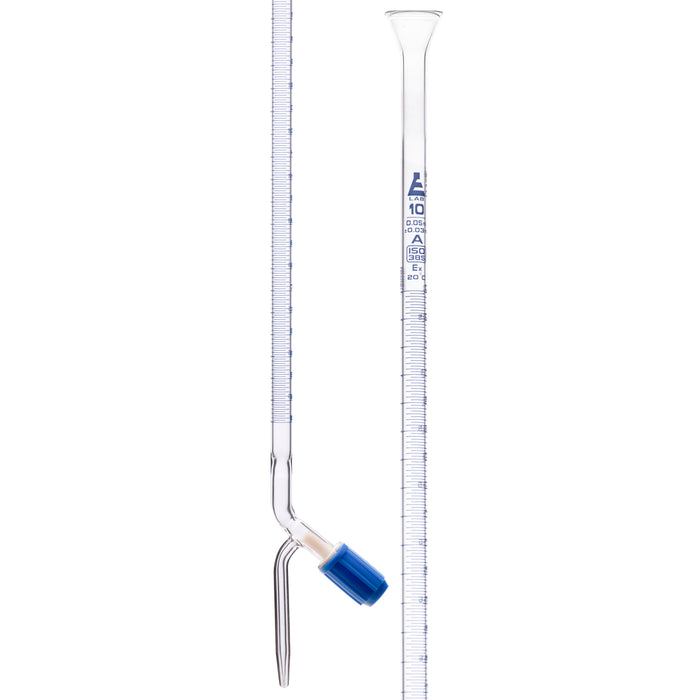 Class A, Accuracy as per DIN ISO 385 standard. Burette is made of high quality 3.3 borosilicate glass. PTFE Needle valve stopcock. Capacity 10ml Sub. Div.0.05ml Tolerance ± 0.3ml