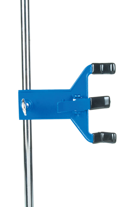 Single burette clamp made from cast metal, includes a built in boss head. It can accommodate 1 burette up to 20 mm in diameter and can be mounted on a rod up to 17 mm in diameter with the screw adjustment. 3 vinyl covered fingers provide a strong and steady grip.