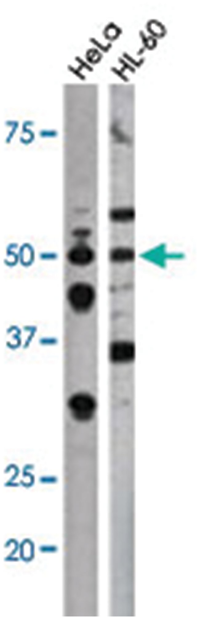 CDC25A (phospho S75), Rabbit anti-Human, Polyclonal Antibody, Abnova, Rabbit polyclonal antibody raised against synthetic phosphopeptide of CDC25A, Each