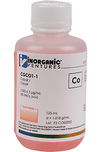 1000 ppm (µg/mL) Cobalt for ICP is a 125mL certified reference material set in a nitric acid matrix for stability. This cobalt standard is Traceable to NIST and manufactured in accordance with our stringent Quality Assurance guidelines. One year Expiration Date.