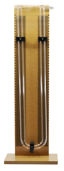 Large scale manometer used for demonstrating the measurement of pressure of liquids and gases. Includes an open-ended U-tube with side arm mounted onto a supported base. Convenient metric scale with 0.1 graduations is printed between the U-tube. Use of a colored liquid will easily show an observed increase or decrease in pressure. Operates using the principle of hydrostatic balance. The fluid inserted into the tube will settle to equal height in each leg. All parts are made of high quality materials that are built to last and withstand multiple uses. Great for demonstration uses in a science classroom.Eisco Labs proudly manufactures its own products using state-of-the-art equipment, and following the highest standards of quality control.Each product is carefully designed by a team of laboratory professionals and experienced engineers with quality and durability in mind. They are manufactured with only the highest grade, raw materials and according to international quality standards to ensure that they can withstand use in even the toughest laboratory environments.