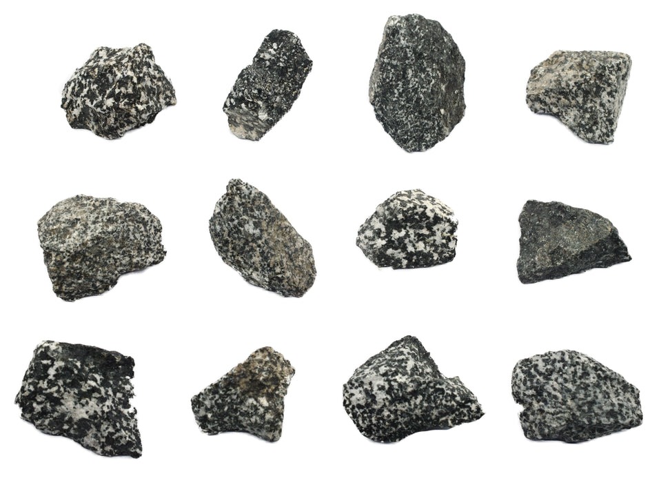 Diorite Specimen, Diorite Specimen straddles the line between mafic and felsic rock chemistry., Pack of 12