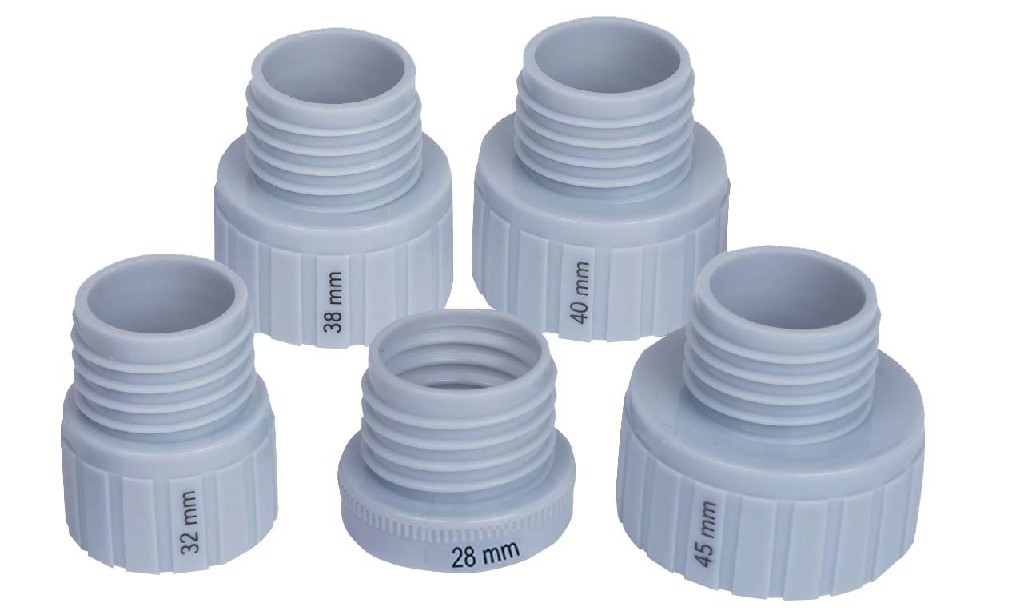 Here is the corrected text: This VWR bottle top dispenser adapter assortment includes sizes 25 mm, 28 mm, 32 mm, 38 mm, 40 mm, and 45 mm. Additionally, two discharge tubes for bottle top dispensers are available, with volume ranges of 1-10 ml and 1-100 ml. Each product has a unique catalog number: 76319-594, 76319-596, 76319-598, 76319-578, 76319-580, 76319-600, 76319-602, 76319-604, and 76319-606. All products have a final SAP description link of 36021793 and are ready for use.