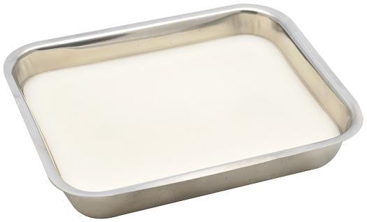 This tray is made of stainless steel and comes with a wax coating. Its dimensions are 30x20cm.