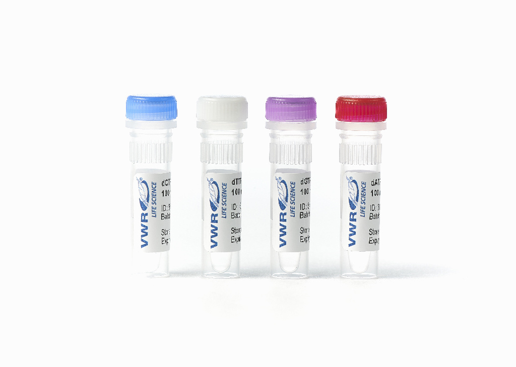 Ready to use molecular biology grade dNTP mixes and dNTP sets., The dNTP mix is designed to save hands-on time for researchers, and reduce the possibility of contamination by reducing pipetting. The dNTP mix and dNTP solutions are convenient for use in DNA polymerization reactions, DNA labelling and sequencing processes., 02_BulletPoint: Available as pre-mixed 40 or 100 mM solutions , or as sets of individual 100 mM dNTP solutions | Both pre-mixed and sets have been functionally tested in PCR | Purity >99% by HPLC | Supplied in solution at pH 7.3 to 7.5, 13_Caution: For Research Use Only. Not for use in diagnostic procedures., Ready to use molecular biology grade dNTP mixes and dNTP sets., The dNTP mix is designed to save hands-on time for researchers, and reduce the possibility of contamination by reducing pipetting. The dNTP mix and dNTP solutions are convenient for use in DNA polymerization reactions, DNA labelling and sequencing processes., 02_BulletPoint: Available as pre-mixed 40 or 100 mM solutions , or as sets of individual 100 mM dNTP solutions | Both pre-mixed and sets have been functionally tested in PCR | Purity >99% by HPLC | Supplied in solution at pH 7.3 to 7.5, 13_Caution: For Research Use Only. Not for use in diagnostic procedures., dNTP Mix 40 mM, Size: 40 μmoL, Cat. No.: 76620-544, Units: EA, Volume: 2× 0.5 ml, Ready to use molecular biology grade dNTP mixes and dNTP sets., The dNTP mix is designed to save hands-on time for researchers, and reduce the possibility of contamination by reducing pipetting. The dNTP mix and dNTP solutions are convenient for use in DNA polymerization reactions, DNA labelling and sequencing processes., 02_BulletPoint: Available as pre-mixed 40 or 100 mM solutions , or as sets of individual 100 mM dNTP solutions | Both pre-mixed and sets have been functionally tested in PCR | Purity >99% by HPLC | Supplied in solution at pH 7.3 to 7.5, 13_Caution: For Research Use Only. Not for use in diagnostic procedures., dNTP Mix 100 mM, Size: 200 μmoL, Cat. No.: 76620-542, Units: EA, Volume: 2× 1 ml, Ready to use molecular biology grade dNTP mixes and dNTP sets., The dNTP mix is designed to save hands-on time for researchers, and reduce the possibility of contamination by reducing pipetting. The dNTP mix and dNTP solutions are convenient for use in DNA polymerization reactions, DNA labelling and sequencing processes., 02_BulletPoint: Available as pre-mixed 40 or 100 mM solutions , or as sets of individual 100 mM dNTP solutions | Both pre-mixed and sets have been functionally tested in PCR | Purity >99% by HPLC | Supplied in solution at pH 7.3 to 7.5, 13_Caution: For Research Use Only. Not for use in diagnostic procedures., dNTP Set (100mM of each dATP, dCTP, dGTP, dTTP), Size: 100 μmoL of each, Cat. No.: 76620-548, Units: EA, Volume: 16× 250 µl, Ready to use molecular biology grade dNTP mixes and dNTP sets., The dNTP mix is designed to save hands-on time for researchers, and reduce the possibility of contamination by reducing pipetting. The dNTP mix and dNTP solutions are convenient for use in DNA polymerization reactions, DNA labelling and sequencing processes., 02_BulletPoint: Available as pre-mixed 40 or 100 mM solutions , or as sets of individual 100 mM dNTP solutions | Both pre-mixed and sets have been functionally tested in PCR | Purity >99% by HPLC | Supplied in solution at pH 7.3 to 7.5, 13_Caution: For Research Use Only. Not for use in diagnostic procedures., dNTP Set (100mM of each dATP, dCTP, dGTP, dTTP), Size: 25 μmoL of each, Cat. No.: 76620-546, Units: EA, Volume: 4× 250 µl