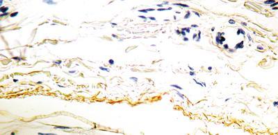 Elastin^ Clone number BA-4, This antibody recognizes insoluble elastin, alpha-elastin, soluble non-cross linked precursor of elastin (tropoelastin). Elastin is an important polymeric protein of connective tissue that imparts elasticity to vertebrate elastic tissue.