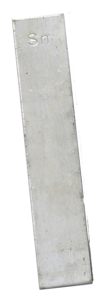 High-quality electrode strips measuring 100mm x 19mm are stamped with the identifier "Tin Electrodes Strip". They are ideal for students conducting electrochemical experiments, offering exceptional quality and reliability.
