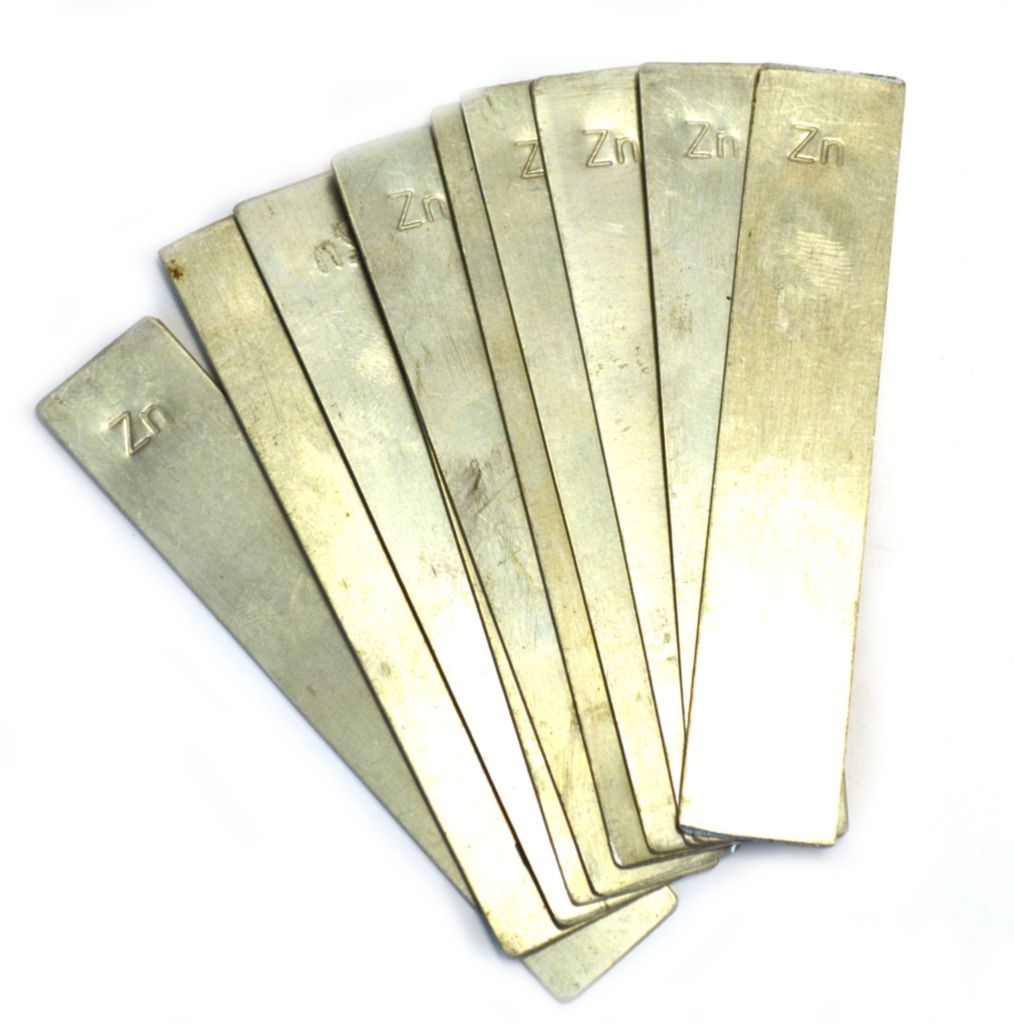 This high-quality electrode strip measures 100mm x 19mm and is stamped with the identifier "Zinc Electrode Strip". It is ideal for students' electrochemical experiments, offering exceptional quality and performance.