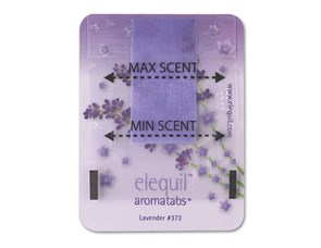 100% pure essential oils.scented tab on self-adhesive label.allows for minimum or maximum scent exposure.promotes relaxation, comfort, and sleep.Elequil aromatabs, aromatherapy designed for the clinical setting - Relax, relieve, refresh with Elequil aromatabs – 100% pure essential oils in a unique controlled delivery system. The perfect addition to any healthcare or palliative care setting, Elequil aromatabs help improve quality of care as a complementary health approach and assist in your efforts to provide a more pleasant experience for patients, residents, family members, and staff.Lavender (Lavandula angustifolia) is a top note1 essential oil lasting anywhere between 8-24 hours.1 A note represents volatility rate at which the essential oil evaporates classified into top, middle, and/or base notes.