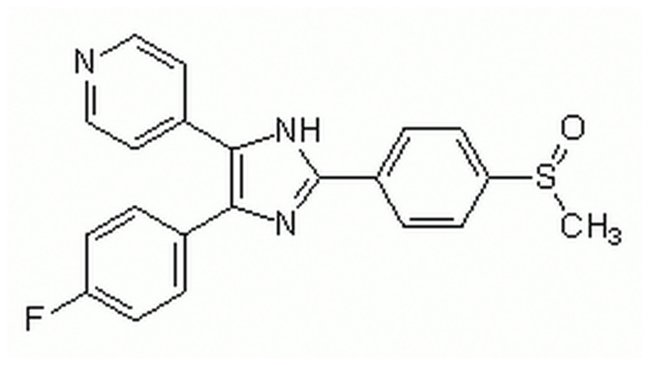 SB 203580, CAS 152121-47-6, is a highly specific, potent, cell-permeable, selective, reversible, and ATP-competitive inhibitor of p38 MAP kinase (IC50 = 34 nM in vitro, 600 nM in cells).