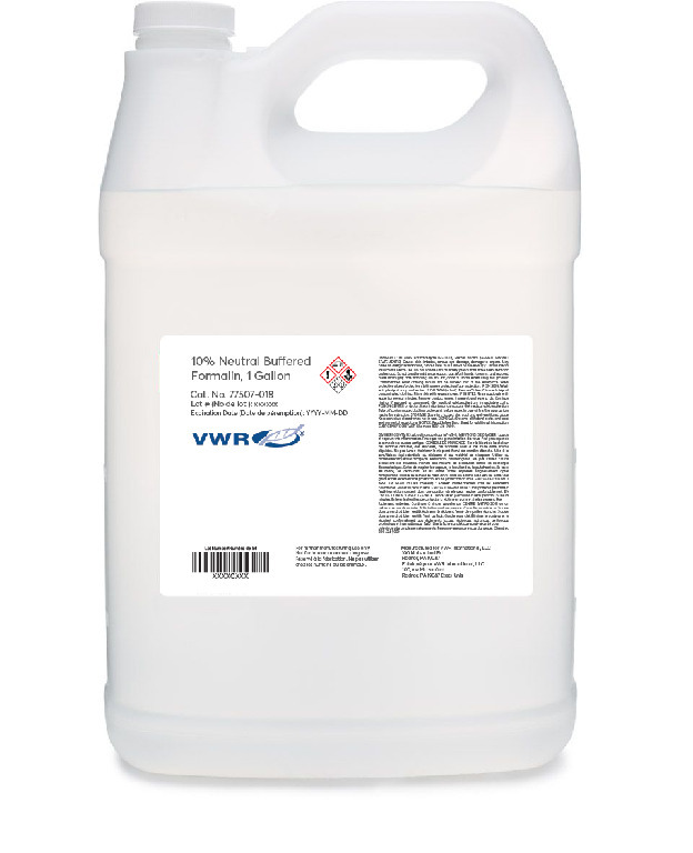 CAS: 50-00-0, Concentration (<70%): 10%, Formula: CH₂O, MDL: MFCD00003274, Pack type: Plastic can, VWR®, part of Avantor has industry leading Anatomical Pathology reagents available for your lab., 02_BulletPoint: ISO 13485 Certified | F-style gallons for easier storage and fewer spills | Transparency and availability to help you with reliability, 08_Certifications: ISO 13485 Certified., 11_Delivery: Supplied with screw cap and pouring ring., 12_Packaging: The bottles are packaged in shrinked-wrapped modules., Size: 4×1 gal., Final SAP Desc Link: 2992793, SAP Description Status: Ready, MW_value: 30.03 g/mol, DESC_CALC_test_BP: VWR®, Formalin 10%, neutral buffered, EINECS: 200-001-8, GHS Symbol 1: GHS08, GHS Symbol 2: GHS07, Signalword: Warning, Storage temperature_value: Ambient, Cat. No.: 77507-018, CAS: 50-00-0, Concentration (<70%): 10%, Formula: CH₂O, MDL: MFCD00003274, Pack type: Cube, VWR®, part of Avantor has industry leading Anatomical Pathology reagents available for your lab., 02_BulletPoint: ISO 13485 Certified | F-style gallons for easier storage and fewer spills | Transparency and availability to help you with reliability, 08_Certifications: ISO 13485 Certified., 11_Delivery: Supplied with screw cap and pouring ring., 12_Packaging: The bottles are packaged in shrinked-wrapped modules., Size: 5 gal., Final SAP Desc Link: 2992793, SAP Description Status: Ready, MW_value: 30.03 g/mol, DESC_CALC_test_BP: VWR®, Formalin 10%, neutral buffered, EINECS: 200-001-8, GHS Symbol 1: GHS08, GHS Symbol 2: GHS07, Signalword: Warning, Storage temperature_value: Ambient, Cat. No.: 77507-022, CAS: 50-00-0, Concentration (<70%): 10%, Formula: CH₂O, MDL: MFCD00003274, Pack type: Plastic can, VWR®, part of Avantor has industry leading Anatomical Pathology reagents available for your lab., 02_BulletPoint: ISO 13485 Certified | F-style gallons for easier storage and fewer spills | Transparency and availability to help you with reliability, 08_Certifications: ISO 13485 Certified., 11_Delivery: Supplied with screw cap and pouring ring., 12_Packaging: The bottles are packaged in shrinked-wrapped modules., Size: 2.5 gal., Final SAP Desc Link: 2992793, SAP Description Status: Ready, MW_value: 30.03 g/mol, DESC_CALC_test_BP: VWR®, Formalin 10%, neutral buffered, EINECS: 200-001-8, GHS Symbol 1: GHS08, GHS Symbol 2: GHS07, Signalword: Warning, Storage temperature_value: Ambient, Cat. No.: 77507-020, CAS: 50-00-0, Concentration (<70%): 10%, Formula: CH₂O, MDL: MFCD00003274, Pack type: Drum, VWR®, part of Avantor has industry leading Anatomical Pathology reagents available for your lab., 02_BulletPoint: ISO 13485 Certified | F-style gallons for easier storage and fewer spills | Transparency and availability to help you with reliability, 08_Certifications: ISO 13485 Certified., 11_Delivery: Supplied with screw cap and pouring ring., 12_Packaging: The bottles are packaged in shrinked-wrapped modules., Size: 55 gal., Final SAP Desc Link: 2992793, SAP Description Status: Ready, MW_value: 30.03 g/mol, DESC_CALC_test_BP: VWR®, Formalin 10%, neutral buffered, EINECS: 200-001-8, GHS Symbol 1: GHS08, GHS Symbol 2: GHS07, Signalword: Warning, Storage temperature_value: Ambient, Cat. No.: 77507-024, CAS: 50-00-0, Concentration (<70%): 10%, Formula: CH₂O, Grade/Usage: Histology, MDL: MFCD00003274, VWR®, part of Avantor has industry leading Anatomical Pathology reagents available for your lab., 02_BulletPoint: ISO 13485 Certified | F-style gallons for easier storage and fewer spills | Transparency and availability to help you with reliability, 08_Certifications: ISO 13485 Certified., 11_Delivery: Supplied with screw cap and pouring ring., 12_Packaging: The bottles are packaged in shrinked-wrapped modules., Final SAP Desc Link: 2992793, SAP Description Status: Ready, MW_value: 30.03 g/mol, DESC_CALC_test_BP: VWR®, Formalin 10%, neutral buffered, EINECS: 200-001-8, GHS Symbol 1: GHS08, GHS Symbol 2: GHS07, Signalword: Warning, Storage temperature_value: Ambient