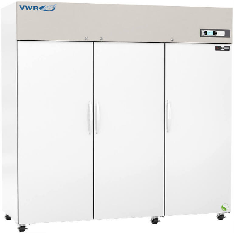Temperature range: 1...10 °C, Transform your laboratory environment with VWR® Premium laboratory refrigerators., These units bring the epitome of future-focused engineering to your scientific work., 04_BodyText: Experience temperature control at its finest with precision microprocessor technology. Noisy disruptions can be avoided with ultra-quiet operation. Dynamic compressors reduces energy consumption by adapting to cooling demands., 05_BodyText: Enhance your results and embrace a serene environment with VWR® Premium laboratory refrigerators. Step into a new era of tranquility and efficiency in your laboratory., 02_BulletPoint: Ultra-quiet variable speed compressors | Microprocessor temperature control | Superior energy efficiency | Full array of alarms | Natural hydrocarbon refrigerants, 08_Certifications: ETL/cETL Listed., Capacity: 2039 L (72 cu. ft.), VWR® 72 cu. ft. Premium laboratory glass door refrigerator, Cat. No.: 77574-966, Weight: 399 kg (880 lbs.), Exterior W×D×H: 2057×921×2070 mm (81×36.25×81.5"), Interior W×D×H: 1943×635×1495 mm (76.5×25×58.875"), Cat. No.: 77574-966, No. of shelves: 15 adjustable shelves, Door type: Three swing glass doors, Defrost: Cycle, Final SAP Desc Link: 6058295, SAP Description Status: Ready, Temperature range: 1...10 °C, Transform your laboratory environment with VWR® Premium laboratory refrigerators., These units bring the epitome of future-focused engineering to your scientific work., 04_BodyText: Experience temperature control at its finest with precision microprocessor technology. Noisy disruptions can be avoided with ultra-quiet operation. Dynamic compressors reduces energy consumption by adapting to cooling demands., 05_BodyText: Enhance your results and embrace a serene environment with VWR® Premium laboratory refrigerators. Step into a new era of tranquility and efficiency in your laboratory., 02_BulletPoint: Ultra-quiet variable speed compressors | Microprocessor temperature control | Superior energy efficiency | Full array of alarms | Natural hydrocarbon refrigerants, 08_Certifications: ETL/cETL Listed., Capacity: 2039 L (72 cu. ft.), VWR® 72 cu. ft. Premium laboratory solid door refrigerator, Cat. No.: 77574-968, Weight: 338 kg (745 lbs.), Exterior W×D×H: 2057×914×2070 mm (81×36×81.5"), Interior W×D×H: 1943×635×1495 mm (76.5×25×58.875"), Cat. No.: 77574-968, No. of shelves: 15 adjustable shelves, Door type: Three swing solid doors, Defrost: Cycle, Final SAP Desc Link: 6058295, SAP Description Status: Ready, Transform your laboratory environment with VWR® Premium laboratory refrigerators., These units bring the epitome of future-focused engineering to your scientific work., 04_BodyText: Experience temperature control at its finest with precision microprocessor technology. Noisy disruptions can be avoided with ultra-quiet operation. Dynamic compressors reduces energy consumption by adapting to cooling demands., 05_BodyText: Enhance your results and embrace a serene environment with VWR® Premium laboratory refrigerators. Step into a new era of tranquility and efficiency in your laboratory., 02_BulletPoint: Ultra-quiet variable speed compressors | Microprocessor temperature control | Superior energy efficiency | Full array of alarms | Natural hydrocarbon refrigerants, 08_Certifications: ETL/cETL Listed., Final SAP Desc Link: 6058295, SAP Description Status: Ready