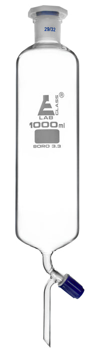 Funnel Dropping - Cylindrical, cap. 1000ml, socket size 29/32, borosilicate glass, graduated cylindrical with screw type Rotaflow stopcock & interchangeable plastic stopper, Each