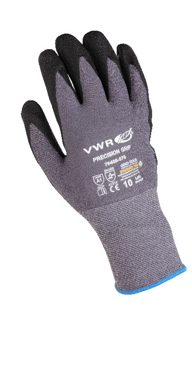 Glove color: Gray | Black, Glove size: 11, Latex/Latex-free: Latex-Free, Powdered/Powder-free: Powder-Free, The VWR® precision grip glove with grip dots and polyurethane coating provide basic cut protection and enhanced grip. Ideal for handling, picking, packaging, automotive, or situations that require dexterity in a dry and/or dirty environment., 02_BulletPoint: Grip dots | Nylon composition | Nitrile (NBR) coated | Gray knit glove with black coating, 08_Certifications: Meets requirements for ANSI A1 Cut Protection (Level A). EN388:2016. The CE marking on these products means that they meet the requirements of European directive 89/686/CEE or EU Regulation 2016/425 on Personal Protective Equipment concerning protection, comfort and strength. Certified by OKEO-TEX meeting Standard 100 certifying that no harmful substances are used in the production of these products., Sterility: Non sterile, Gauge: 15, Finish: Nitrile coating, Cat. No.: 76408-578, The VWR® precision grip glove with grip dots and polyurethane coating provide basic cut protection and enhanced grip. Ideal for handling, picking, packaging, automotive, or situations that require dexterity in a dry and/or dirty environment., 02_BulletPoint: Grip dots | Nylon composition | Nitrile (NBR) coated | Gray knit glove with black coating, 08_Certifications: Meets requirements for ANSI A1 Cut Protection (Level A). EN388:2016. The CE marking on these products means that they meet the requirements of European directive 89/686/CEE or EU Regulation 2016/425 on Personal Protective Equipment concerning protection, comfort and strength. Certified by OKEO-TEX meeting Standard 100 certifying that no harmful substances are used in the production of these products., Glove color: Gray | Black, Glove size: 9, Latex/Latex-free: Latex-Free, Powdered/Powder-free: Powder-Free, The VWR® precision grip glove with grip dots and polyurethane coating provide basic cut protection and enhanced grip. Ideal for handling, picking, packaging, automotive, or situations that require dexterity in a dry and/or dirty environment., 02_BulletPoint: Grip dots | Nylon composition | Nitrile (NBR) coated | Gray knit glove with black coating, 08_Certifications: Meets requirements for ANSI A1 Cut Protection (Level A). EN388:2016. The CE marking on these products means that they meet the requirements of European directive 89/686/CEE or EU Regulation 2016/425 on Personal Protective Equipment concerning protection, comfort and strength. Certified by OKEO-TEX meeting Standard 100 certifying that no harmful substances are used in the production of these products., Sterility: Non sterile, Gauge: 15, Finish: Nitrile coating, Cat. No.: 76408-574, Glove color: Gray | Black, Glove size: 8, Latex/Latex-free: Latex-Free, Powdered/Powder-free: Powder-Free, The VWR® precision grip glove with grip dots and polyurethane coating provide basic cut protection and enhanced grip. Ideal for handling, picking, packaging, automotive, or situations that require dexterity in a dry and/or dirty environment., 02_BulletPoint: Grip dots | Nylon composition | Nitrile (NBR) coated | Gray knit glove with black coating, 08_Certifications: Meets requirements for ANSI A1 Cut Protection (Level A). EN388:2016. The CE marking on these products means that they meet the requirements of European directive 89/686/CEE or EU Regulation 2016/425 on Personal Protective Equipment concerning protection, comfort and strength. Certified by OKEO-TEX meeting Standard 100 certifying that no harmful substances are used in the production of these products., Sterility: Non sterile, Gauge: 15, Finish: Nitrile coating, Cat. No.: 76408-572, Glove color: Gray | Black, Glove size: 7, Latex/Latex-free: Latex-Free, Powdered/Powder-free: Powder-Free, The VWR® precision grip glove with grip dots and polyurethane coating provide basic cut protection and enhanced grip. Ideal for handling, picking, packaging, automotive, or situations that require dexterity in a dry and/or dirty environment., 02_BulletPoint: Grip dots | Nylon composition | Nitrile (NBR) coated | Gray knit glove with black coating, 08_Certifications: Meets requirements for ANSI A1 Cut Protection (Level A). EN388:2016. The CE marking on these products means that they meet the requirements of European directive 89/686/CEE or EU Regulation 2016/425 on Personal Protective Equipment concerning protection, comfort and strength. Certified by OKEO-TEX meeting Standard 100 certifying that no harmful substances are used in the production of these products., Sterility: Non sterile, Gauge: 15, Finish: Nitrile coating, Cat. No.: 76408-570, Glove color: Gray | Black, Glove size: 6, Latex/Latex-free: Latex-Free, Powdered/Powder-free: Powder-Free, The VWR® precision grip glove with grip dots and polyurethane coating provide basic cut protection and enhanced grip. Ideal for handling, picking, packaging, automotive, or situations that require dexterity in a dry and/or dirty environment., 02_BulletPoint: Grip dots | Nylon composition | Nitrile (NBR) coated | Gray knit glove with black coating, 08_Certifications: Meets requirements for ANSI A1 Cut Protection (Level A). EN388:2016. The CE marking on these products means that they meet the requirements of European directive 89/686/CEE or EU Regulation 2016/425 on Personal Protective Equipment concerning protection, comfort and strength. Certified by OKEO-TEX meeting Standard 100 certifying that no harmful substances are used in the production of these products., Sterility: Non sterile, Gauge: 15, Finish: Nitrile coating, Cat. No.: 76408-568
