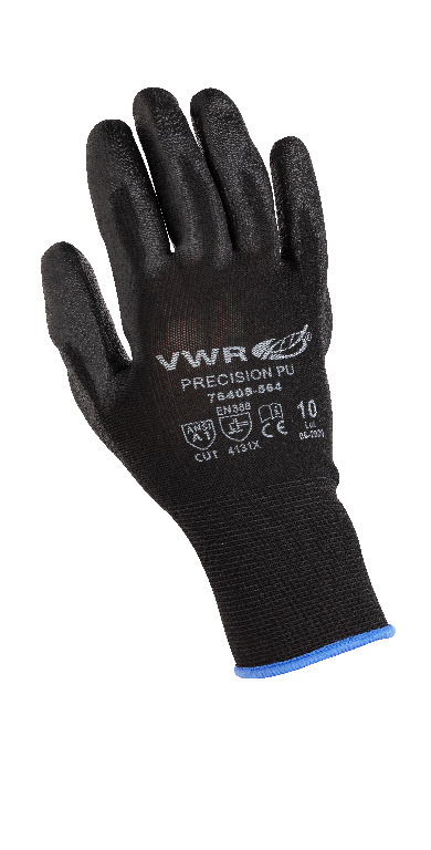Glove color: Black, Glove size: 8, Latex/Latex-free: Latex-Free, Powdered/Powder-free: Powder-Free, The VWR® precision grip glove with polyurethane coating provide basic cut protection and grip. Ideal for handling small components, or situations that require dexterity in a dry and/or dirty environment., Also great for package handling, picking, and packing., 02_BulletPoint: Nylon composition | Polyurethane (PU) coated | Black knit glove with black coating, 08_Certifications: Meets requirements for ANSI A1 Cut Protection (Level A). EN388:2016. The CE marking on these products means that they meet the requirements of European directive 89/686/CEE or EU Regulation 2016/425 on Personal Protective Equipment concerning protection, comfort and strength. Certified by OKEO-TEX meeting Standard 100 certifying that no harmful substances are used in the production of these products., Sterility: Non sterile, Gauge: 15, Finish: Polyurethane coating, Cat. No.: 76408-560, Glove color: Black, Glove size: 7, Latex/Latex-free: Latex-Free, Powdered/Powder-free: Powder-Free, The VWR® precision grip glove with polyurethane coating provide basic cut protection and grip. Ideal for handling small components, or situations that require dexterity in a dry and/or dirty environment., Also great for package handling, picking, and packing., 02_BulletPoint: Nylon composition | Polyurethane (PU) coated | Black knit glove with black coating, 08_Certifications: Meets requirements for ANSI A1 Cut Protection (Level A). EN388:2016. The CE marking on these products means that they meet the requirements of European directive 89/686/CEE or EU Regulation 2016/425 on Personal Protective Equipment concerning protection, comfort and strength. Certified by OKEO-TEX meeting Standard 100 certifying that no harmful substances are used in the production of these products., Sterility: Non sterile, Gauge: 15, Finish: Polyurethane coating, Cat. No.: 76408-558, Glove color: Black, Glove size: 6, Latex/Latex-free: Latex-Free, Powdered/Powder-free: Powder-Free, The VWR® precision grip glove with polyurethane coating provide basic cut protection and grip. Ideal for handling small components, or situations that require dexterity in a dry and/or dirty environment., Also great for package handling, picking, and packing., 02_BulletPoint: Nylon composition | Polyurethane (PU) coated | Black knit glove with black coating, 08_Certifications: Meets requirements for ANSI A1 Cut Protection (Level A). EN388:2016. The CE marking on these products means that they meet the requirements of European directive 89/686/CEE or EU Regulation 2016/425 on Personal Protective Equipment concerning protection, comfort and strength. Certified by OKEO-TEX meeting Standard 100 certifying that no harmful substances are used in the production of these products., Sterility: Non sterile, Gauge: 15, Finish: Polyurethane coating, Cat. No.: 76408-556, The VWR® precision grip glove with polyurethane coating provide basic cut protection and grip. Ideal for handling small components, or situations that require dexterity in a dry and/or dirty environment., Also great for package handling, picking, and packing., 02_BulletPoint: Nylon composition | Polyurethane (PU) coated | Black knit glove with black coating, 08_Certifications: Meets requirements for ANSI A1 Cut Protection (Level A). EN388:2016. The CE marking on these products means that they meet the requirements of European directive 89/686/CEE or EU Regulation 2016/425 on Personal Protective Equipment concerning protection, comfort and strength. Certified by OKEO-TEX meeting Standard 100 certifying that no harmful substances are used in the production of these products., Glove color: Black, Glove size: 11, Latex/Latex-free: Latex-Free, Powdered/Powder-free: Powder-Free, The VWR® precision grip glove with polyurethane coating provide basic cut protection and grip. Ideal for handling small components, or situations that require dexterity in a dry and/or dirty environment., Also great for package handling, picking, and packing., 02_BulletPoint: Nylon composition | Polyurethane (PU) coated | Black knit glove with black coating, 08_Certifications: Meets requirements for ANSI A1 Cut Protection (Level A). EN388:2016. The CE marking on these products means that they meet the requirements of European directive 89/686/CEE or EU Regulation 2016/425 on Personal Protective Equipment concerning protection, comfort and strength. Certified by OKEO-TEX meeting Standard 100 certifying that no harmful substances are used in the production of these products., Sterility: Non sterile, Gauge: 15, Finish: Polyurethane coating, Cat. No.: 76408-566, Glove color: Black, Glove size: 10, Latex/Latex-free: Latex-Free, Powdered/Powder-free: Powder-Free, The VWR® precision grip glove with polyurethane coating provide basic cut protection and grip. Ideal for handling small components, or situations that require dexterity in a dry and/or dirty environment., Also great for package handling, picking, and packing., 02_BulletPoint: Nylon composition | Polyurethane (PU) coated | Black knit glove with black coating, 08_Certifications: Meets requirements for ANSI A1 Cut Protection (Level A). EN388:2016. The CE marking on these products means that they meet the requirements of European directive 89/686/CEE or EU Regulation 2016/425 on Personal Protective Equipment concerning protection, comfort and strength. Certified by OKEO-TEX meeting Standard 100 certifying that no harmful substances are used in the production of these products., Sterility: Non sterile, Gauge: 15, Finish: Polyurethane coating, Cat. No.: 76408-564, Glove color: Black, Glove size: 9, Latex/Latex-free: Latex-Free, Powdered/Powder-free: Powder-Free, The VWR® precision grip glove with polyurethane coating provide basic cut protection and grip. Ideal for handling small components, or situations that require dexterity in a dry and/or dirty environment., Also great for package handling, picking, and 