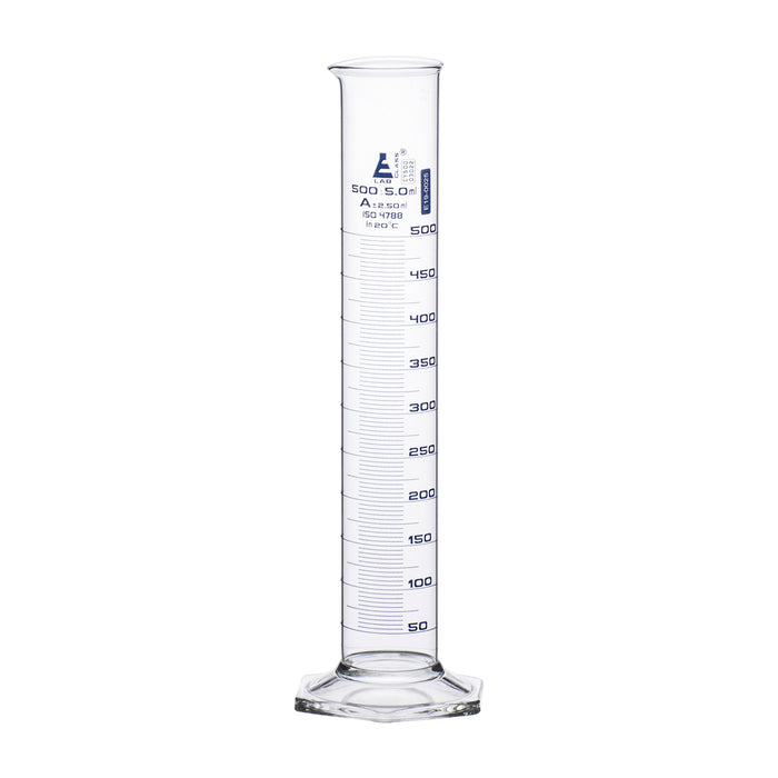 Graduated Cylinder - Glass 500ml, Class A with Hex Base & Individual work certificate, Each