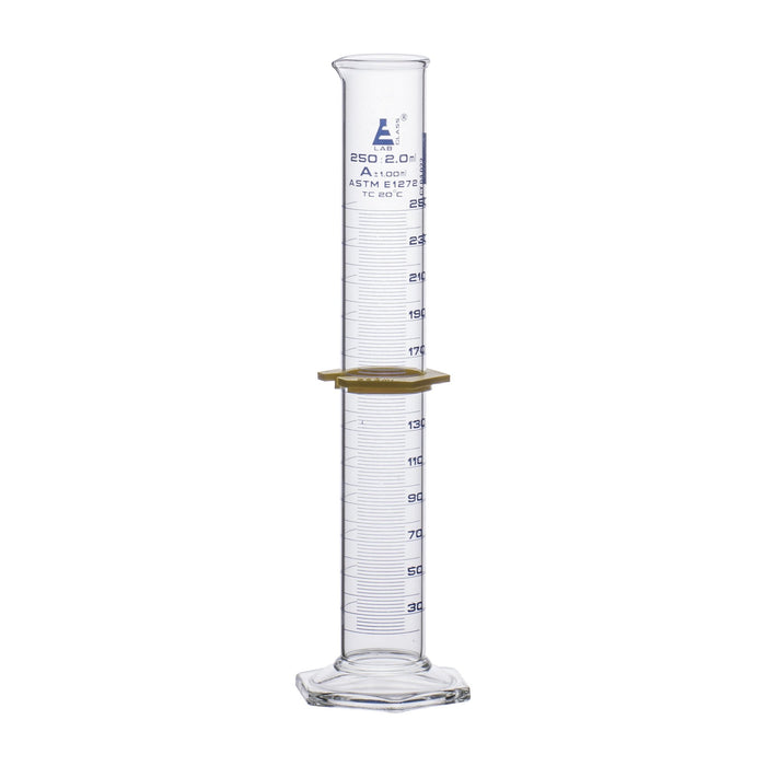 Graduated Cylinders - Glass , Class -A 250ml ASTM with Hexagonal Base , Guard & individual work certificate, Each
