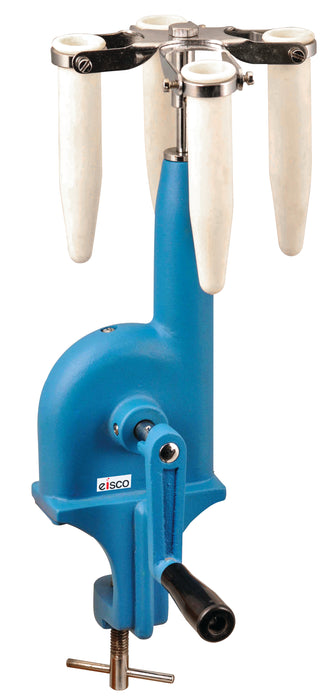This economical centrifuge clamps directly to any benchtop and features a table clamp, hand crank, and four buckets capable of holding tubes with capacities up to 15ml.