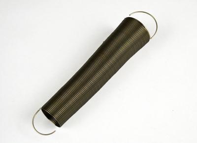 This large harmonic motion spring is ideal for demonstrations or hands-on experiments in the physics classroom, where it can be used to investigate simple harmonic motion or Hooke's Law. The spring's elongations are closely proportional to the applied forces, making it easy to use. Made of stainless steel wire, the windings of this truncated cone-shaped spring interfere with each other less than those of a helical spring, resulting in truly sinusoidal motion. The spring measures 7 inches (18 cm) in length, has a maximum diameter of 1.4 inches (3.5 cm), and features a spring constant (k) of 9.6 N/m.