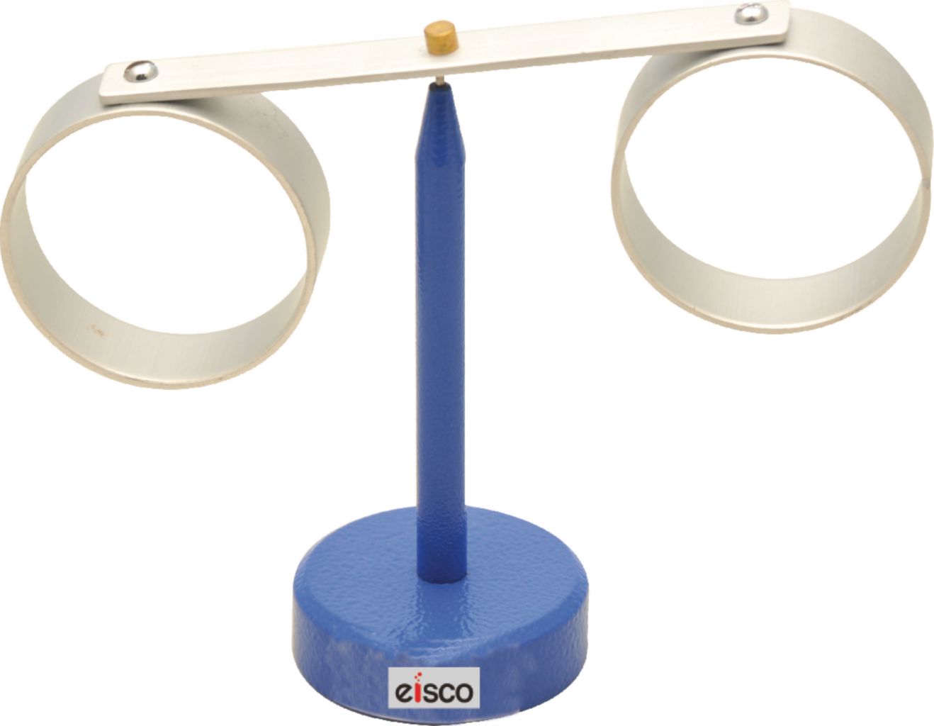 The Blue cast iron base features a rod and needle for holding loops. The open loop dimensions are: inner diameter 1.82 in, outer diameter 1.98 in. Similarly, the closed loop dimensions are: inner diameter 1.82 in, outer diameter 1.98 in. This apparatus comes with aluminum loops connected by a straight bar featuring a groove for placement on the needle. The Lenz' Law apparatus, which includes both open and closed loops, is effective for studying and demonstrating both Lenz' Law and Faraday's Law of Induction.