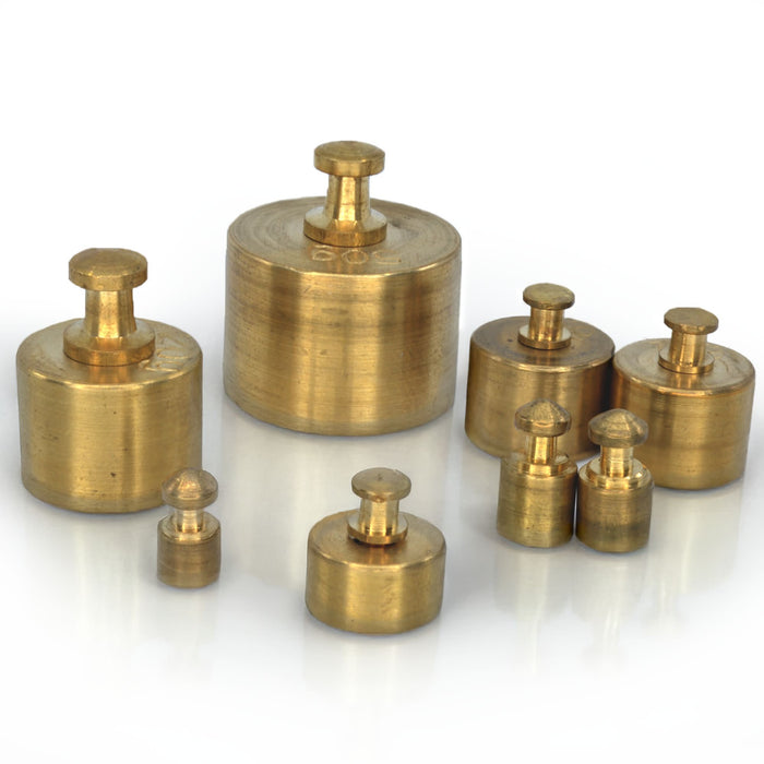 The Eisco Brass Mass Set is a complete eight-piece weight collection designed for use with scales and balances. This set includes one 50g, two 20g, one 10g, one 5g, two 2g, and one 1g weight, crafted from durable solid brass to ensure reliable performance and longevity. The 50g weight has a diamter of 22mm, and a height of 25mm (including handle). The 20g dia. is 16mm, height is 20mm. The 10g dia. is 13mm, height is 14mm. The 5g dia. is 11mm, height is 11mm. The 2g dia is 6mm, height is 12mm. The 1g dia. is 5mm, height is10mm. Perfect for teaching and demonstrating concepts such as weight, mass, and volume, the set is ideal for physics, chemistry, and science experiments in classrooms or laboratories. It is also well-suited for calibration and precision-based measurements, offering versatility for a wide range of applications. A valuable tool for hands-on learning and scientific exploration.