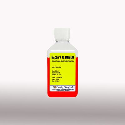 Mccoy'S 5A Medium^ Mccoy'S 5A Medium With L-Glutamine 500Ml; Membrane Filtered, Endotoxin Tested, Ph: 7.0 /-0.2, Used To Grow Normal Bone Marrow, Skin, Gingiva, Testes, Mouse Kidney, Omentum, Adrenal Glands, Lung, Spleen, Rat Embryos And Other Tissues.
