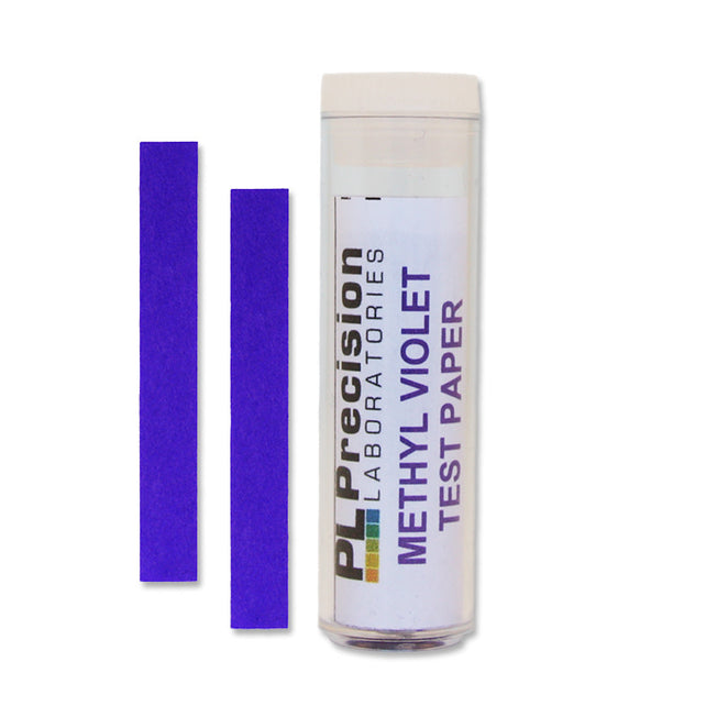 100 PAPERS || 100 Methyl Violate Test Papers in a plastic vial APPLICATIONS || Used to test strong acid solutions & detect nitrogen oxides in vapors NARROW RANGE || Calibrated to accurately measure the pH of a solution within a narrow range of pH 0.2 to 2.0 COLOR CHANGE || Methyl Violet will transition from violet (pH 2.0) to yellow (pH 0.2) SIZE || Each strip measures approximately 48mm long and 6mm wide