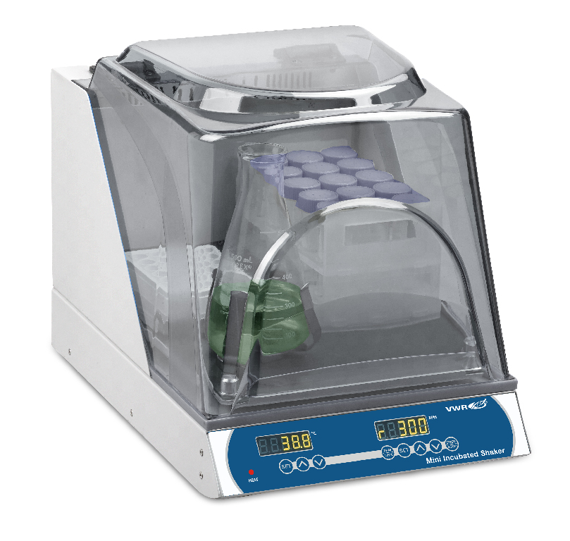 Capacity: 5×500 ml or 2×1 L, Temperature Range: Ambient 5…60 °C, VWR® mini incubated shaker can accept a wide variety of bottles, tube racks and flasks up to 1 liter., The VWR® incubated shakers are compact orbital shakers with precision temperature control., 04_BodyText: Other models in the series are available offering a variety of temperature range capabilities and chamber sizes., 02_BulletPoint: Compact, less than 30.5 cm (12" ) wide | LED display for controlling time, temperature and mixing speed | Unique platform accepts magnetic clamps for easy attachment of flasks and bottles, 08_Certifications: CE marked., 10_Ordering: Supplied without accessory clamps. A wide range of accessories are available to order separately. | Supplied with a standard non-skid, silicone mat that is suitable for low speed shaking of tissue culture flasks, Petri dishes and staining trays. For high speed shaking, an optional universal/magnetic platform is available with clamp accessories for a variety of flasks, tubes and other common vessels., VWR® Incubated shaker Mini, Shaking Speed: 30 - 300 rpm, Cat. No.: 76407-108, Electrical: 115 V, 50/60 Hz, 300 W, VWR® mini incubated shaker can accept a wide variety of bottles, tube racks and flasks up to 1 liter., The VWR® incubated shakers are compact orbital shakers with precision temperature control., 04_BodyText: Other models in the series are available offering a variety of temperature range capabilities and chamber sizes., 02_BulletPoint: Compact, less than 30.5 cm (12" ) wide | LED display for controlling time, temperature and mixing speed | Unique platform accepts magnetic clamps for easy attachment of flasks and bottles, 08_Certifications: CE marked., 10_Ordering: Supplied without accessory clamps. A wide range of accessories are available to order separately. | Supplied with a standard non-skid, silicone mat that is suitable for low speed shaking of tissue culture flasks, Petri dishes and staining trays. For high speed shaking, an optional universal/magnetic platform is available with clamp accessories for a variety of flasks, tubes and other common vessels.