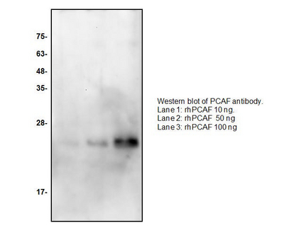 PCAF Antibody, 100ul^ PCAF Antibody, Polyclonal, Host: Rabbit, Isotype: IgG, Species Reactivity: Human, Immunogen: Recombinant human PCAF protein, Synonyms: KAT2B; PCAF; Histone acetyltransferase KAT2B; Histone acetyltransferase PCAF, Application: Western blot, Size: 100ul