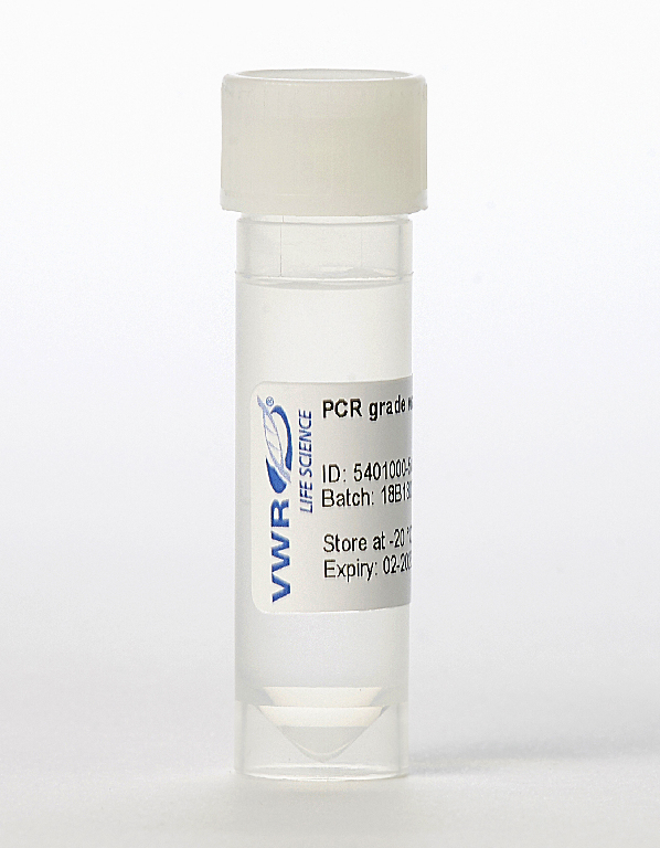 CAS: 7732-18-5, Formula: H₂O, Grade/Usage: Molecular biology | DNA free | PCR | DNase free | Nuclease free, MDL: MFCD00011332, Ultrapure water for PCR, PCR Grade Water is ultrapure H2O, tested for contaminating activities, with no trace of endonuclease activity, nicking activity or exonuclease activity. Absence of human DNA is tested by PCR. Storage at room temperature. Long term storage at -20 °C., 02_BulletPoint: Convenient 5 mL aliquots | Tested for contaminating activities, 13_Caution: For Research Use Only. Not for use in diagnostic procedures., 001_test: DNA nicking activity, 001_result: Passed, 002_test: Endonuclease activity, 002_result: Passed, 003_test: Exonuclease activity, 003_result: Passed, 004_test: Absence of Human DNA, 004_result: Passed, 005_test: Volume check, > 5 ml/tube, 005_result: Passed, MW_value: 18.02 g/mol, Melting Point_without label: 0 °C, Boiling Point_without label: 100 °C, Density_without label: 1 g/cm³ (4 °C), DESC_CALC_test_BP: Water, PCR grade, EINECS: 231-791-2, CAS: 7732-18-5, Formula: H₂O, MDL: MFCD00011332, Pack type: Plastic tube, Ultrapure water for PCR, PCR Grade Water is ultrapure H2O, tested for contaminating activities, with no trace of endonuclease activity, nicking activity or exonuclease activity. Absence of human DNA is tested by PCR. Storage at room temperature. Long term storage at -20 °C., 02_BulletPoint: Convenient 5 mL aliquots | Tested for contaminating activities, 13_Caution: For Research Use Only. Not for use in diagnostic procedures., Size: 6 x 5 mL, 001_test: DNA nicking activity, 001_result: Passed, 002_test: Endonuclease activity, 002_result: Passed, 003_test: Exonuclease activity, 003_result: Passed, 004_test: Absence of Human DNA, 004_result: Passed, 005_test: Volume check, > 5 ml/tube, 005_result: Passed, MW_value: 18.02 g/mol, Melting Point_without label: 0 °C, Boiling Point_without label: 100 °C | 100 °C, Density_without label: 1 g/cm³ (4 °C), DESC_CALC_test_BP: Water, PCR grade, EINECS: 231-791-2, Cat. No.: 76620-532