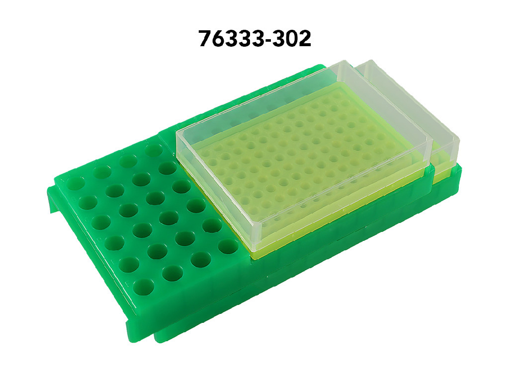 This platform is ideal for satisfying all pre- or post-PCR sampling applications. It comes in assorted colors and features molded alphanumeric indexing for easy sample organization. The removable 96-place workup rack accommodates standard plates, tubes, or strip tubes. Available colors include fluorescent blue, green, yellow, orange, and pink. Dimensions: 170 x 110 x 105 mm. Catalog Number: 76333-302. Compatible tube sizes include 32 x 0.2 ml, 24 x 1.5/2.0 ml, and 16 x 0.5 ml tubes.