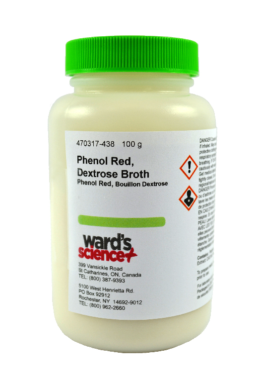 To prepare media, add 20 g of phenol red dextrose broth to a liter of distilled or de-ionized water. The media will not be sterile until autoclaved prior to use., Size: 100 g, Cat. No.: 470317-438, To prepare media, add 20 g of phenol red dextrose broth to a liter of distilled or de-ionized water. The media will not be sterile until autoclaved prior to use., Size: 500 g, Cat. No.: 470317-440, To prepare media, add 20 g of phenol red dextrose broth to a liter of distilled or de-ionized water. The media will not be sterile until autoclaved prior to use.